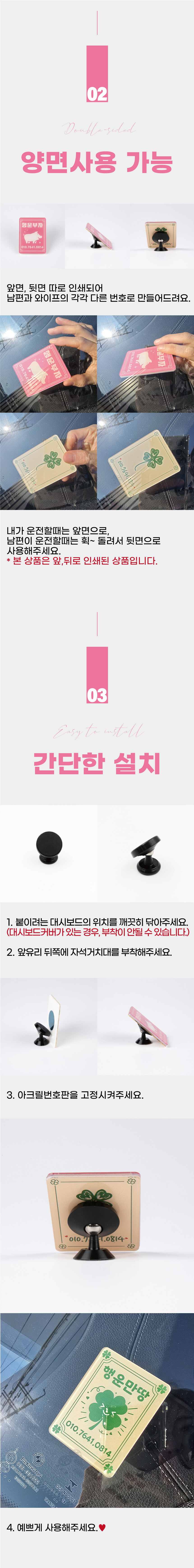 행운부적 양면 듀얼 주차 전화번호판