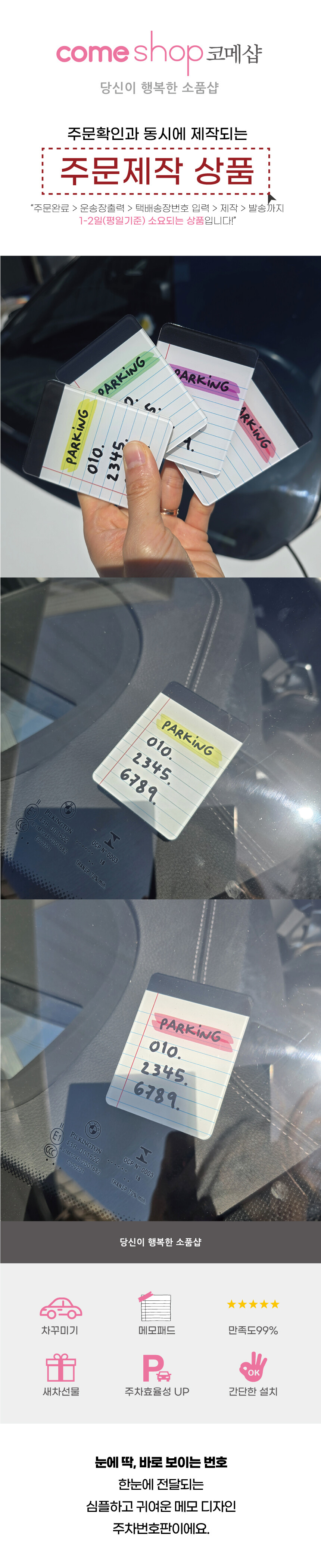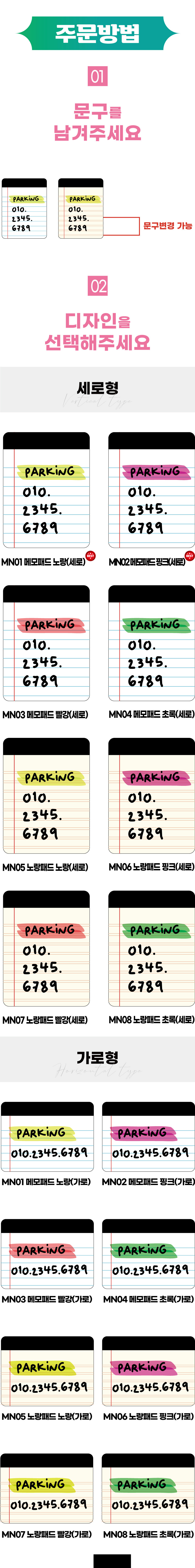 메모패드 착붙 듀얼 양면 주차번호판 전화번호판