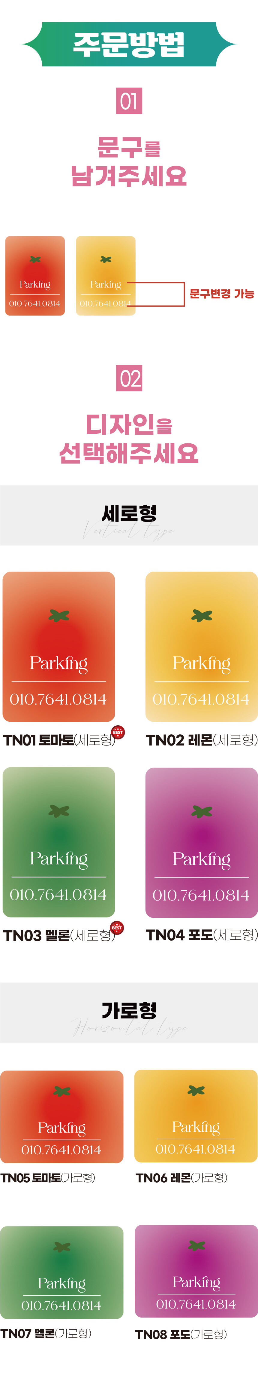 토마토 TN01 착붙 듀얼 양면 주차번호판 전화번호판